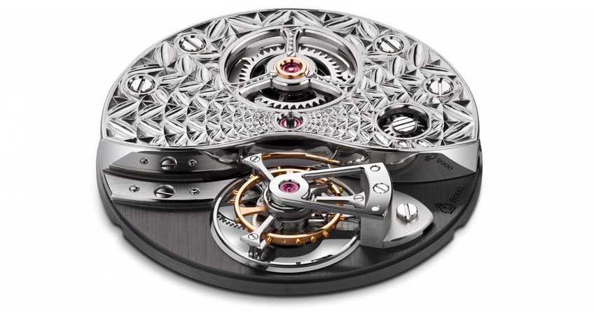 Hand-engraving is a traditional art form that involves the use of hardened steel tools called burins in combination with other special tools. These create cuts, lines and texturing that build up entire images or, as in the case of the TE8 Métiers d’Art II, a beautiful hand-engraved pattern on the barrel bridge and on the back of the main plate, bringing a breathtaking richness of detail to an already exceptional tourbillon timepiece.