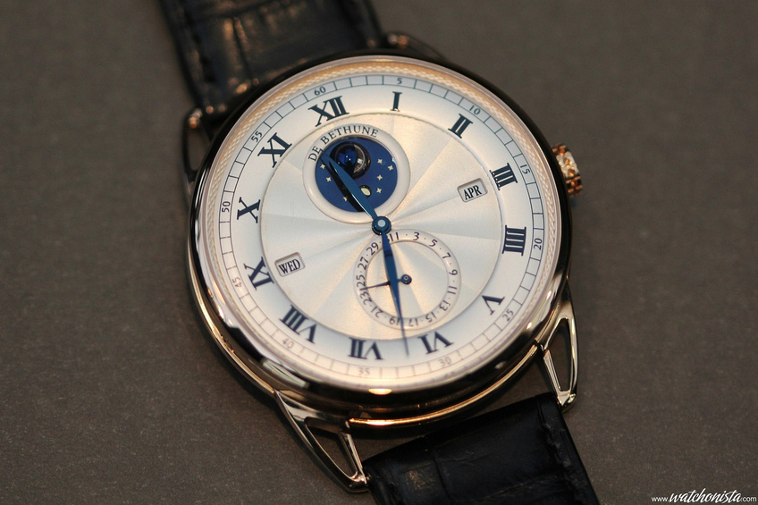 La De Béthune DB25 QP: encore l’un des plus beau QP de l’horlogerie, agrémenté de la fabuleuse lune en 3-D de De Béthune ,sur le mouvement futuriste lui aussi fait maison :