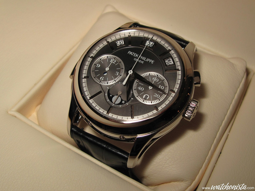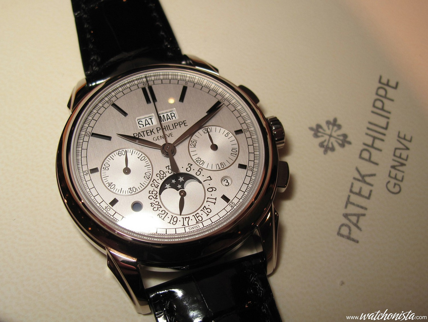 La Patek 5208 : La Patek de poignet la plus superlative de ces dernières années. Présentée à Baselworld 2011, elle regroupe l’ensemble des complications les plus désirables pour les aficionados de Patek : Répétition minute, chronographe et Quantième Perpétuel :