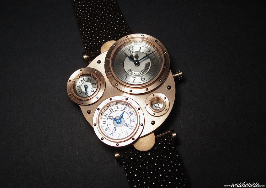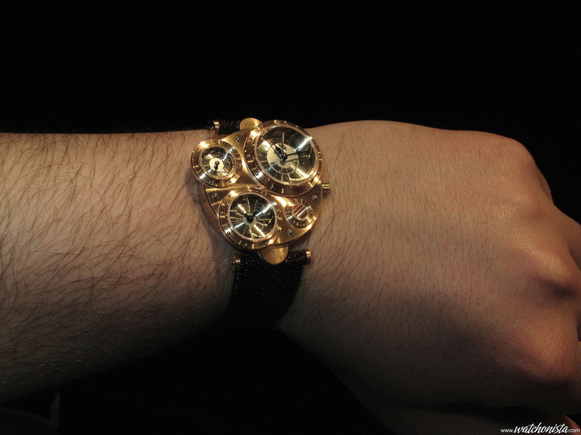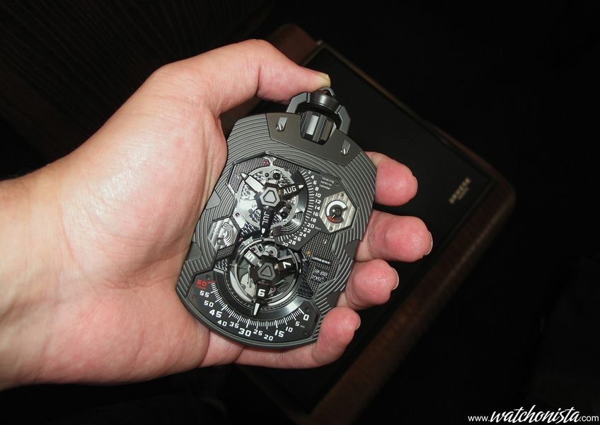 La Urwerk 1001 Zeitdevice : Cette montre-instrument pèse près de 500grammes et elle indique le calendrier sur 1000 ans!! Elle ne déparerait pas dans un équipement de Space Marine :