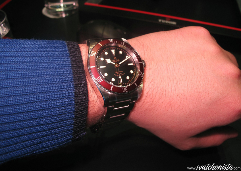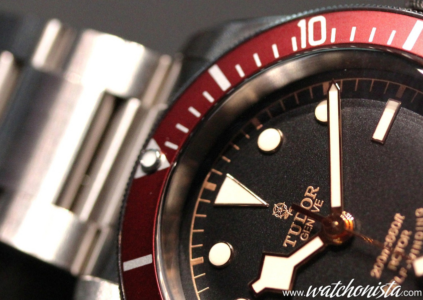 Remarkably, the Tudor team chose to revisit the red bezel. The Black Bay reuses many of the 50's vintage Rolex and Tudor's aesthetic codes: red double gilt dial, snowflake hands, Tudor dynasty's pink as well as a deliciously vintage font. All of this sits on a magical domed dial.