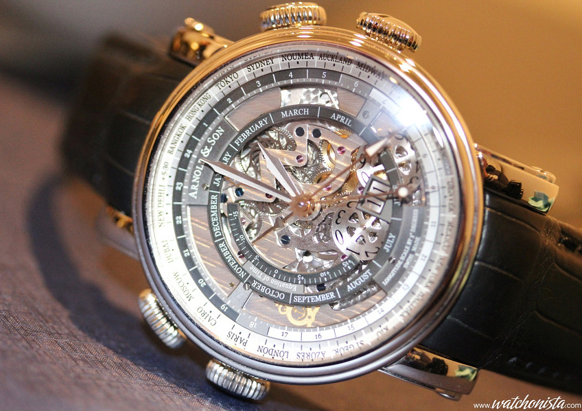 The Arnold & Sons Hornet World Time Skeleton is among these rare pieces which propose a grand complication for the price of a precious metal watch.