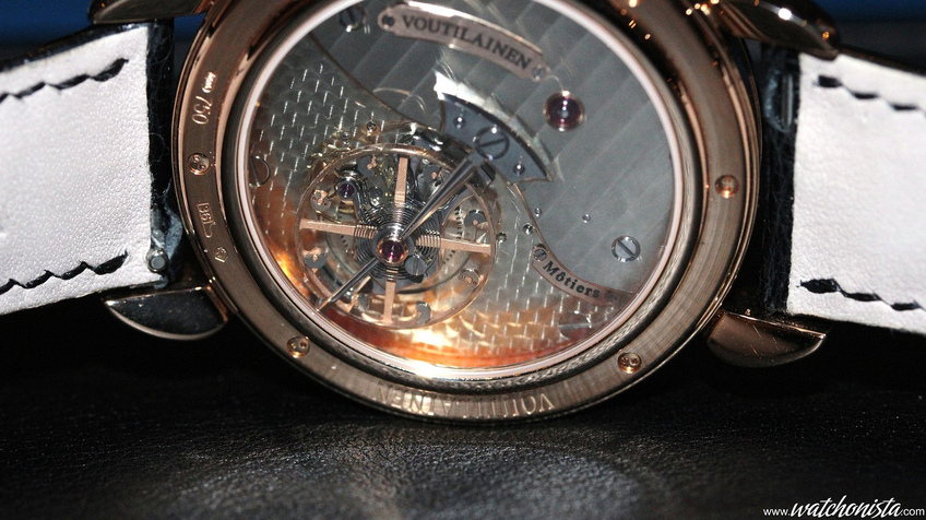 In a really different range of prices, a unique watch made by Kari Voutilainen, a large tourbillon whose creation started in 1996.