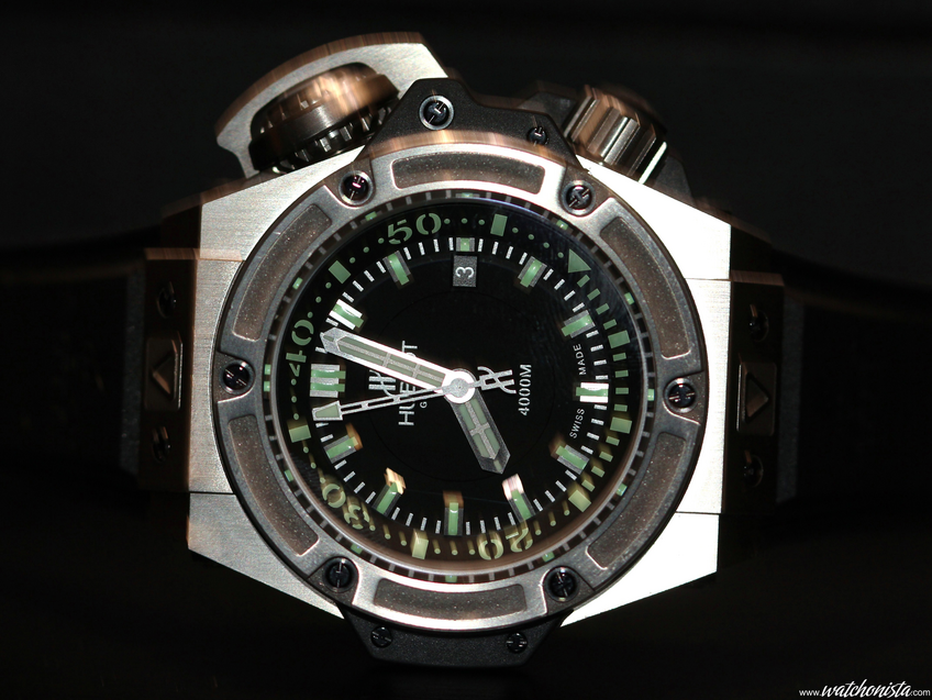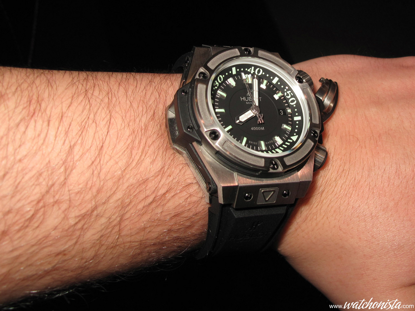 The «Big Bang Oceanographic 4000»: after the questionable «Big Bang King», Hublot presents the «Big Bang Oceanographic 4000», a «Biverian» suitable response to the arms race to the abyss . If the watch takes up the challenge posed by the 3900m announced by Rolex with the «Sea-Dweller Deep Sea», it is still behind Pita Barcelona and its «Oceana 5000 meters».