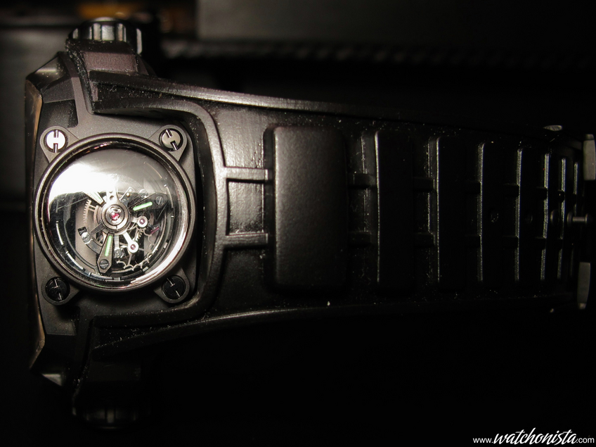 It is in my opinion its biggest flaw: Hublot should have enshrined this tormented movement into a streamlined case, in order to emphasize the originality of the caliber.