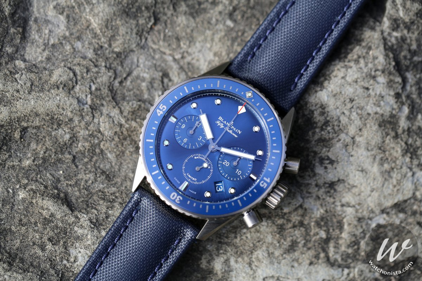 That explains why the current chronograph – in line with tradition – sports a 43.6-mm case and is thus smaller than the other models of the contemporary Fifty Fathoms collection.