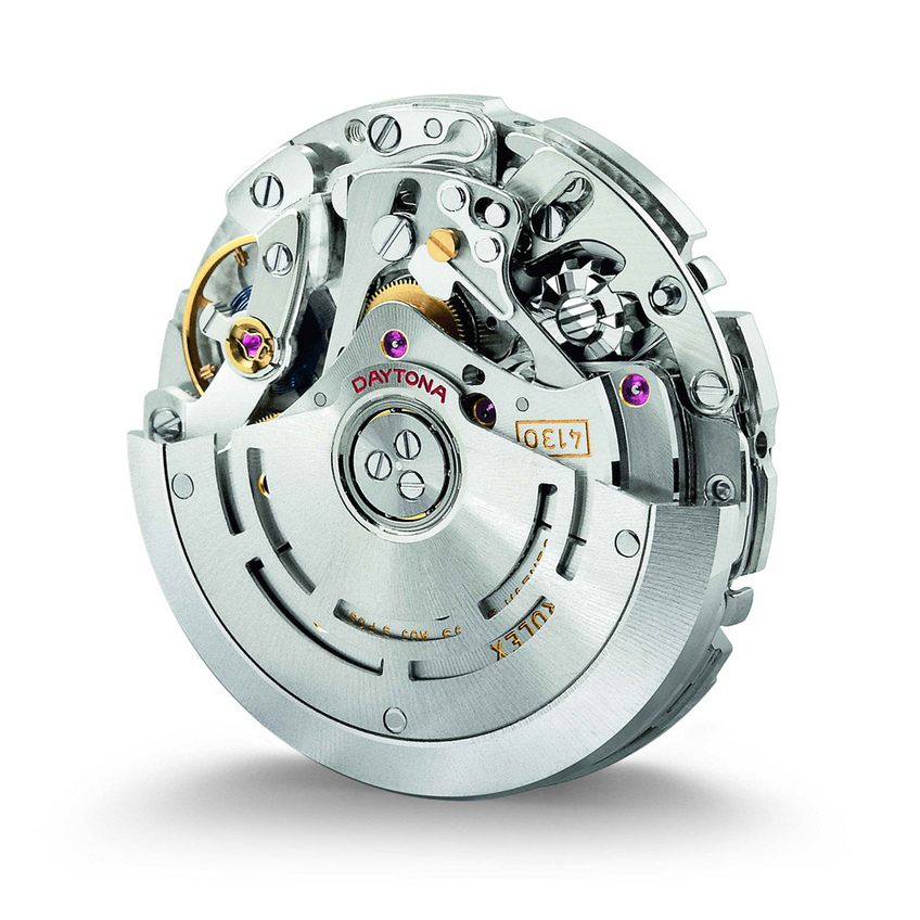 The new calibre 4130 is the first at Rolex to have the name of the model engraved on the oscillating weight: the name Daytona is engraved in red letters in a semi-circle to reflect the one on the dial.