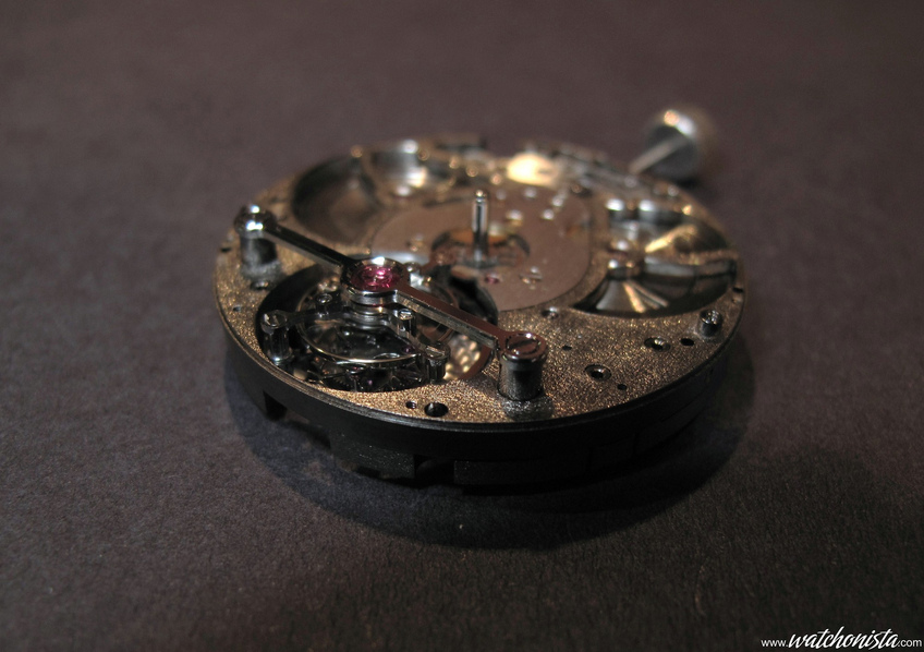 -The VMF4000 and its industrial version, the VMF3000, 11½ lignes, double barrel, 55-hour power reserve, 28.000v/h. It was designed to be fitted with complication plates going from the moon phase to the QP.