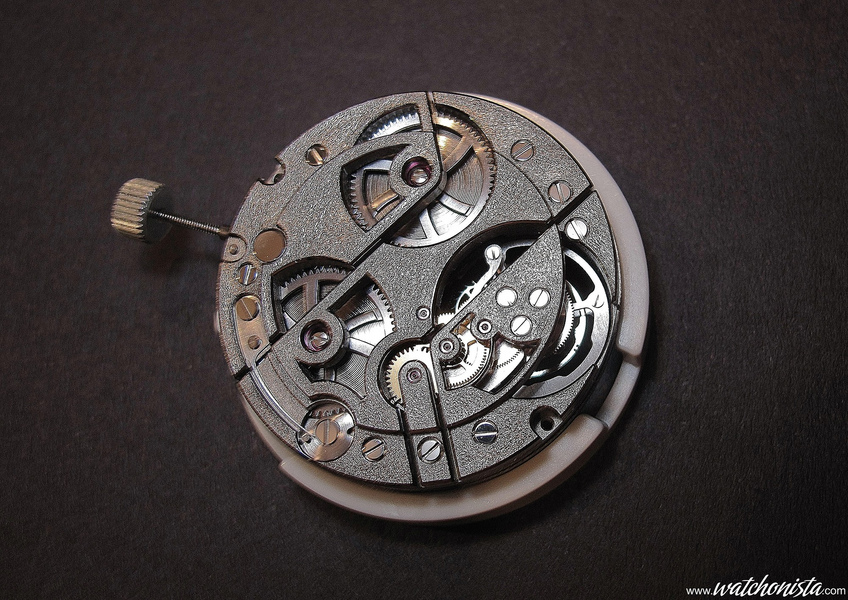 -The VMF6000, which is the most original; I am quite surprised that Vaucher, who is supposed to produce components as generic as possible, proposes such a specific caliber: it is a tonneau movement of 13 lignes by 11, featuring a double barrel set at 28.800v/h.