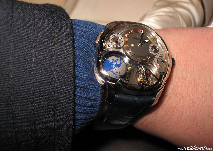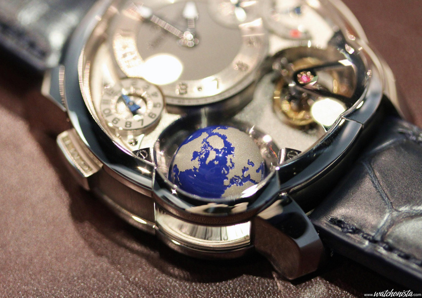 It paid off with this GMT, which sports a gigantic globe made of electroplated titanium.