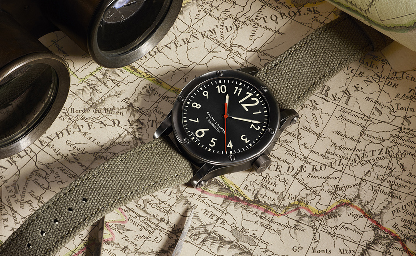 In designing the RL 67 Safari collection, a reference to the year of the brand's creation, Ralph Lauren expresses a distaste for tiny date features. 50mm is a bold, no-nonsense size for a watch case that sports a large aperture devoted to its decimal date display. In addition to the Sellita 300-1 calibre, the model also features a big date module manufactured in Val Fleurier. The dial comes in a camouflage or dark, moody finish with surround crafted in hand-distressed PVD steel for an attractive pre-worn look. Let's not forget that, aside from being famous for his fleet of old-timers, Ralph Lauren is also known to be a big collector of vintage timepieces.