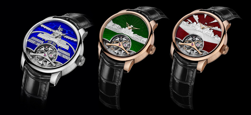 Watchmaking aficionados know that details always make the difference. Yet, in order to understand this it is not enough to take a watch in our hand and admire it. In order to appreciate the true codes of prestigious watchmaking we need to look at pieces closely and admire the nuances and the incredible execution of manual work. Such is the case of these three watches, whose dial’s bottom openworked section fulfills a double aim: to show the watch’s movement and to evoke the domes in the magical East. The pieces are decorated with manual engravings and Grand Feu enamels and they feature contemporary architectural works that illustrate the Sultanate’s modernity; namely the airport, the Opera and the Parliament. Sylvain Bettex, engraver at Glypto, drew these based on photos, an even more complicated task seeing as the airport had not been finished at the time. The “bas relief” technique gives the dials a 3D dimension; a highly artistic piece of work that gives the pieces some depth thus allowing the enamel to be clearly differentiated.