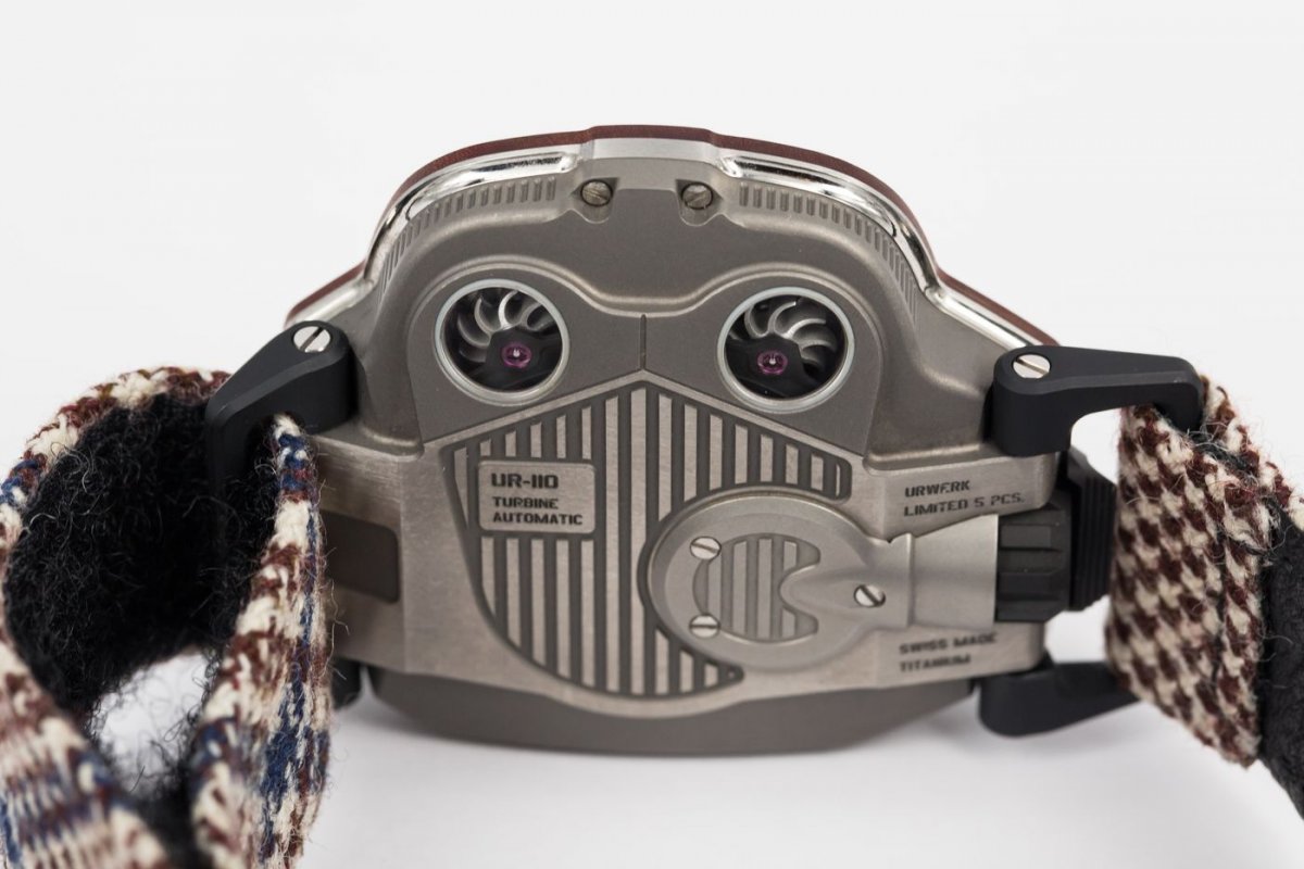The piece’s bezel, cut in precious wood, and its tweed strap make it a true aesthetic revolution. In fact, the strap is signed Timothy Everest, the London-based celebrity tailor who dressed Elton John and designed Tom Cruise’s suits in Mission: Impossible. Each of the ten watches produced – five in Macassar Ebony and five in red ebony, also known as “red ivory” – will be delivered with a set of three straps. Two of them will be in predominantly brown or green Prince of Wales tweed and the third one will be in a fabric derived from Kevlar, a material which had already been used for the UR-210 Y.