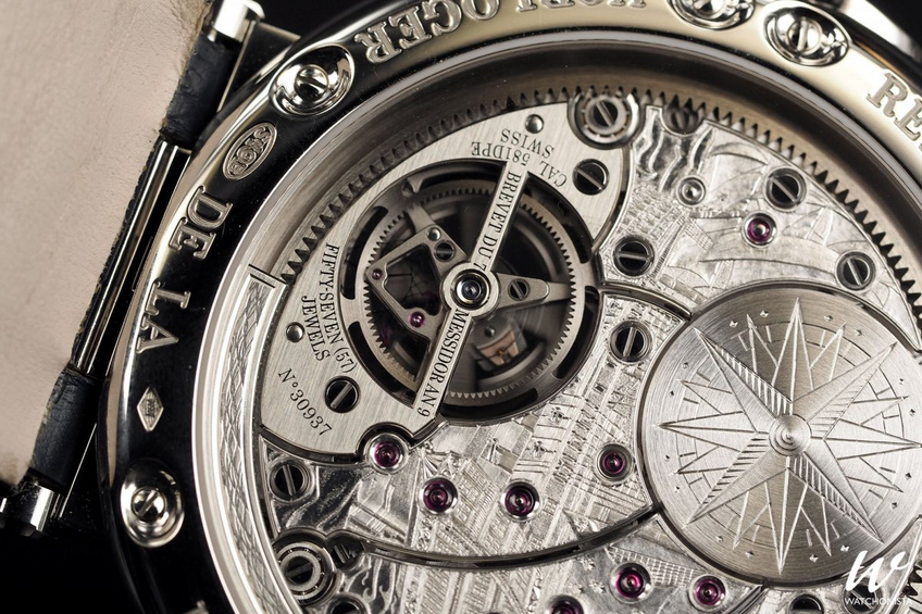 The highly-sophisticated mechanism dubbed the Équation Marchante combined with perpetual calendar feature permits the constant daily display of the difference between civil time (mean solar time) and real solar time. This rare complication might appear pointless for everyday use, but in the Marine watch it proves well worth it. For sailors, if the equation of time is unknown for the day in question, it is impossible for them to properly pinpoint longitude using tools such as the sextant (calculation of true noon of the place where the observer happens to be) and the marine chronometer (kept at the time at the point of departure or set to Greenwich Mean Time).