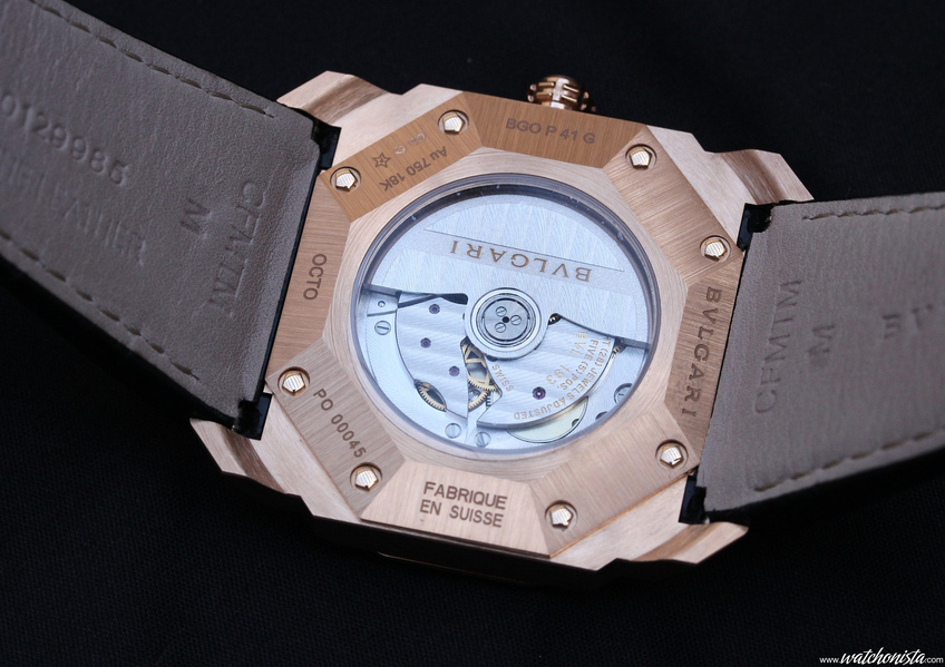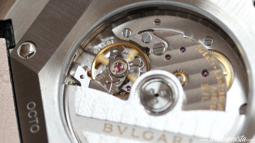 Finally, the last noticeable feature and the most important relative to the continuous level of quality is the caliber. Certainly this Octo is not yet fitted with an “In-House” manufactory movement. It is fitted with the BLV193, based on the Vaucher VMF3000, personalized by Bulgari. The specifications of this 11.5 lignes movement are quite common: 28.800v/h, with less or more a 50-hour power reserve delivered by two barrels for optimal torque. It is only 3.7mm thick, which allows for a thin watch.