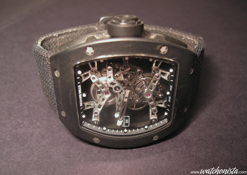 I am rather used to handling Richard Mille watches made of gold; Moreover, a RM «Tonneau» is a bulky and imposing watch, 48x40x12mm.