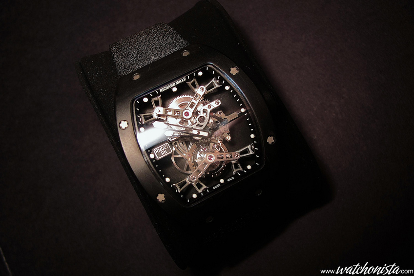 When one takes the RM027 in one’s hand, the surprise is as huge as the watch feels light!