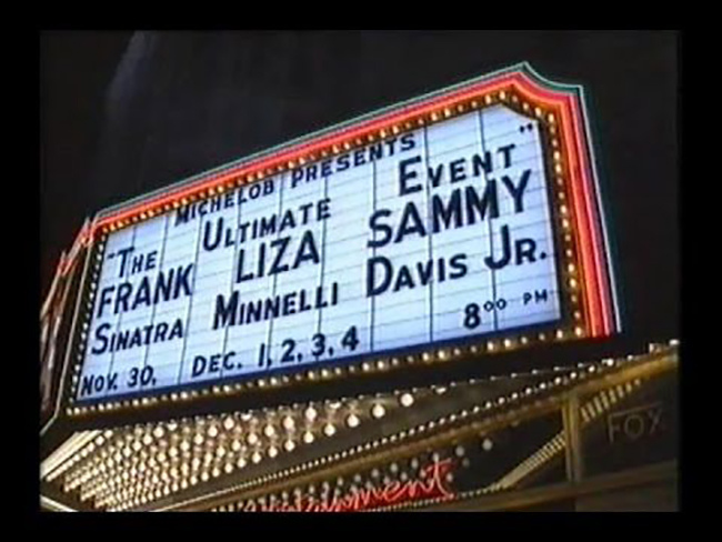 The tour kicked off March 13, 1988, to a sold-out audience at the Oakland Colosseum. Four shows into the tour, Dean left due to the reoccurrence of a kidney issue. Frank and Sammy then brought in Liza Minnelli to finish off the remaining dates and the tour was renamed “The Ultimate Event”. If you watch the videos of the tour, you can see that Sammy still had it.