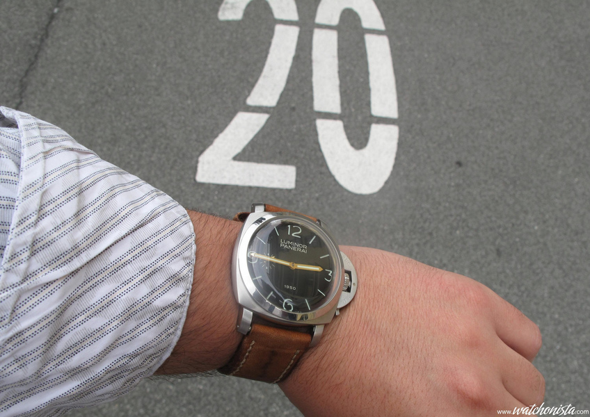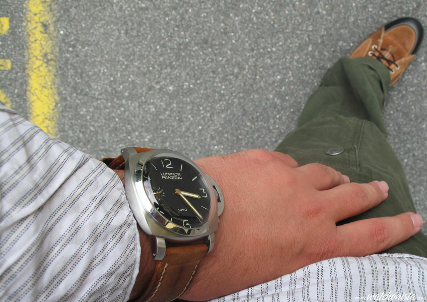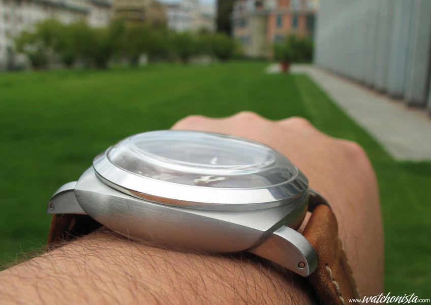 The position of the lugs, too straight, contributes undoubtedly to the discomfort felt when wearing the watch, the next versions of 1950 Luminor will feature more sloping lugs.