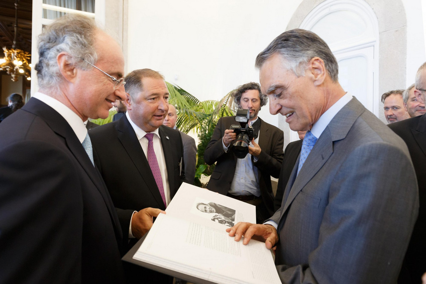 His Excellency the President of the Portuguese Republic Prof. Aníbal Cavaco Silva receiving a copy of Blancpain's collectible volume "Fifty Fathoms, The Dive and Watch History 1953-2013"