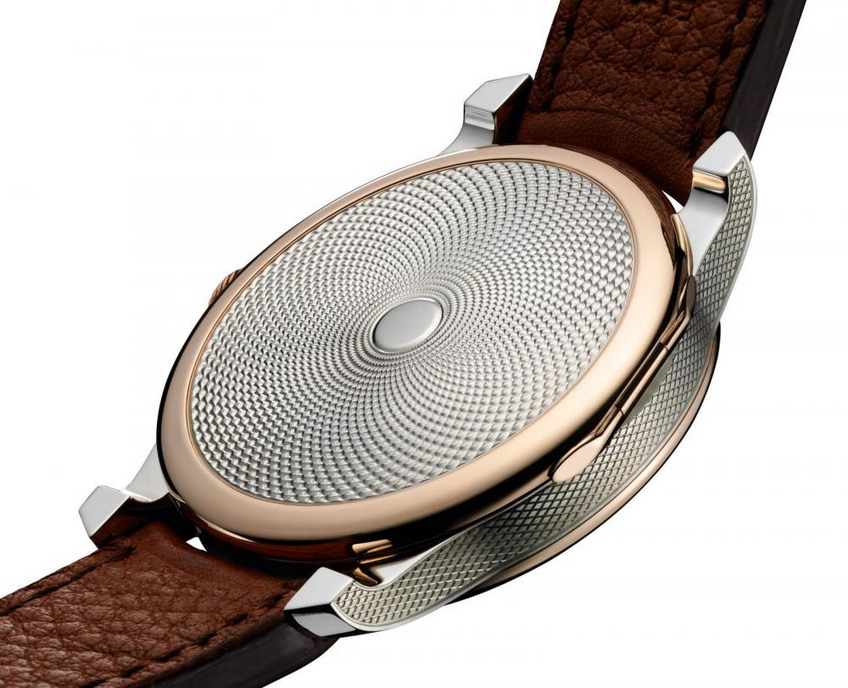 This wristwatch, re-interpretation of the original masterpiece presents the same materials used 30 years ago : a case in guilloche silver enhanced by 2 gold bezels in rose gold 4N.