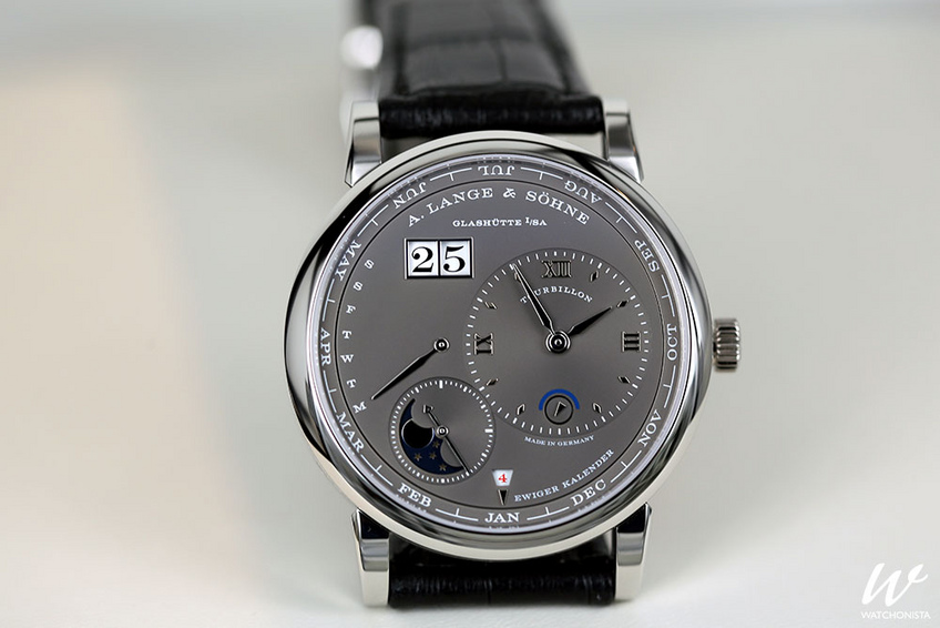En 2001, la Lange 1 Tourbillonreprend les traits distinctifs de l’enseigne saxonne, on cadran excentré, sa grande date et son aiguille indiquant la réserve de marche de 72 heures, auxquels vient s’ajouter une ouverture pour dévoiler partiellement le tourbillon maison. Un petit sous-cadran des secondes vient parfaire les signes particuliers de ce garde-temps qui devient une pièce recherchée, dans la plus pure tradition de discrétion, d’élégance et de subtilité signée Lange.
