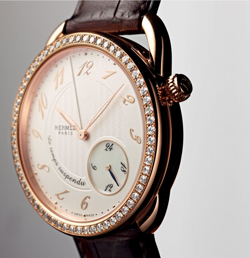 Hermès Arceau Le Temps Suspendu en or rose sertie diamants 38mm