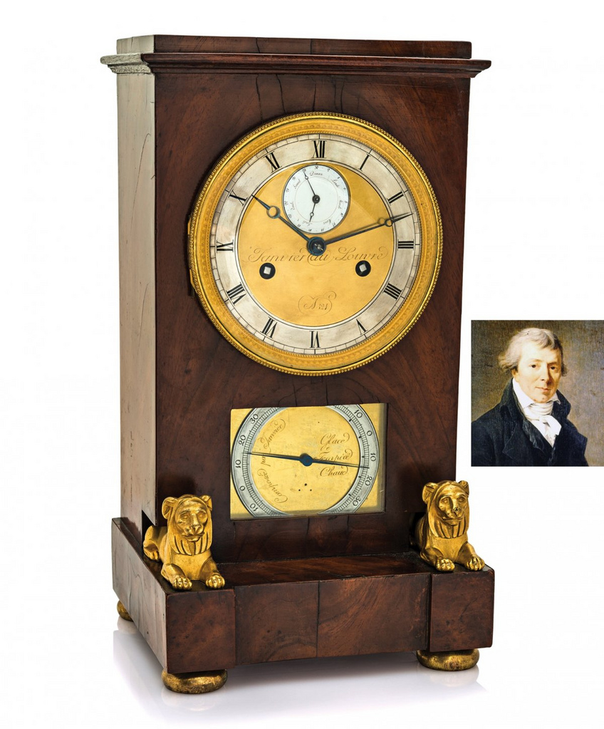 Pour des raisons historiques, je commencerais avec la pendule de cheminée, époque Empire par Antide Janvier (1751 – 1835), qui représente un trésor des premiers temps de l'ère horlogère. La pendule est mise aux enchères par Antiquorum dans le lot 452.