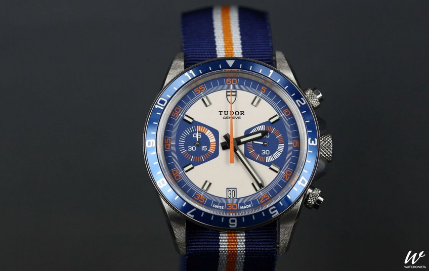 Ce « revival » commence en 2010 quand la nouvelle équipe mise en place introduit un premier modèle, le Tudor Heritage Chrono. Il s’inspire directement d’une pièce de 1970, pourtant jamais distribuée ni vendue, la Référence 7033, restée à l’état de prototype existant en trois versions dont une avec lunette tournante pouvant faire usage de GMT ou de double chronométrage et équipée d’un Valjoux 7734. Ressortant la pièce du tiroir où elle dormait depuis 40 ans, les designers de la maison s’inspirent directement de son cadran bicolore et de ses deux compteurs excentrés à 3h et à 9h, avec leur forme trapézoïdale typique de cette époque. Ils suppriment le verre cyclope caractéristique de Rolex – une façon de s’en distinguer – et apportent à la pièce toute une série de raffinements formels et ergonomiques, au niveau du boîtier, des cornes, de la protection de la couronne, des poussoirs… Et ils l’adjoignent, outre son bracelet métal repensé, d’un bracelet textile type Nato de haute qualité artisanale. Ce bracelet textile exclusif va faire véritable tache d’huile, inspirer de nombreuses marques, spécialistes du vintage et autres revendeurs et lancer l’incroyable engouement pour les Nato que l’on retrouve désormais partout.