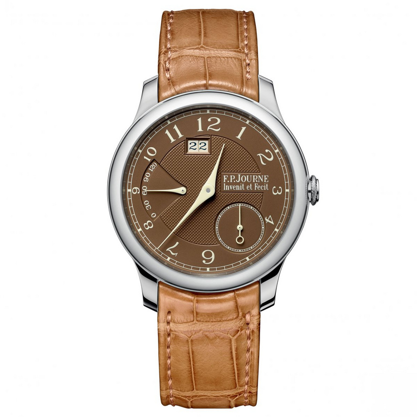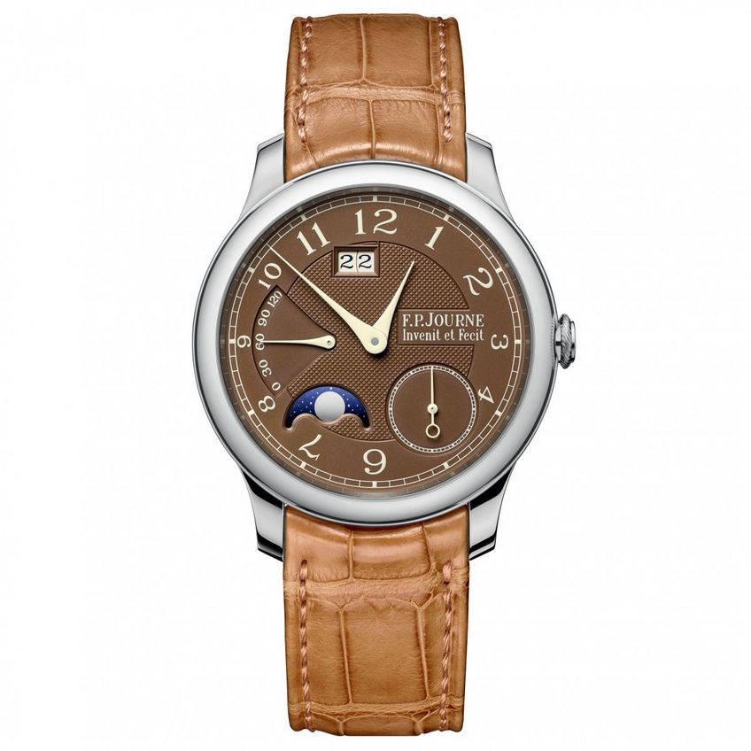 F.P. Journe a créé un cadran de couleur chaude qui se marie parfaitement aux boitiers Platine 40mm et au bracelet en alligator caramel de l’Octa Automatique Réserve et de l’Octa Automatique Lune.