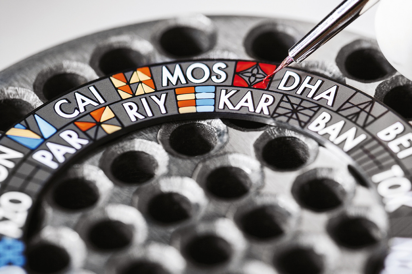 Cet univers coloré et ces personnalisations éclatantes ont inspiré la création de la montre Louis Vuitton Escale Worldtime, au style à la fois original, ludique et exclusif. Arborant 38 teintes vives appliquées selon la technique de la peinture miniature, son cadran se veut un appel au voyage, une invitation à parcourir l’horizon et le temps. Pour connaître l’heure partout sur la planète, La Fabrique du Temps