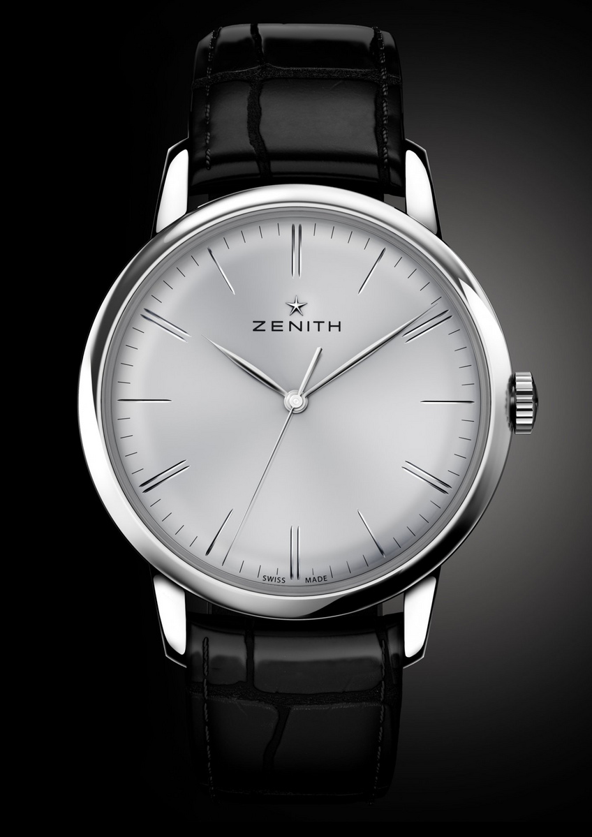 Zenith présente le modèle Elite 6150 équipé d’un nouveau mouvement manufacture : le calibre Elite 6150. Ce nouveau mouvement mécanique à remontage automatique est la version contemporaine du fameux mouvement de base Elite, conçu au début des années 1990. Un calibre extra-plat gratifié du titre de « meilleur mouvement de l’année » lors de sa présentation à Bâle en 1994. En réponse aux exigences du moment, les ingénieurs et concepteurs de Zenith ont choisi d’en accroître les performances et la polyvalence. Ainsi, une réserve de marche de minimum 100 heures, un diamètre élargi à 30 mm ou encore une seconde centrale directe. Avec le souci constant de préserver la finesse exceptionnelle d’un mouvement qui ne mesure que 3,92 mm d’épaisseur ! Animé du nouveau calibre Elite 6150, le modèle Elite 6150 se distingue par son classicisme et son élégante sobriété. Son fin boîtier de 42 mm de diamètre est rehaussé d’un cadran bombé épuré, ponctué de délicates aiguilles élancées. Un modèle voué à la pérennité.
