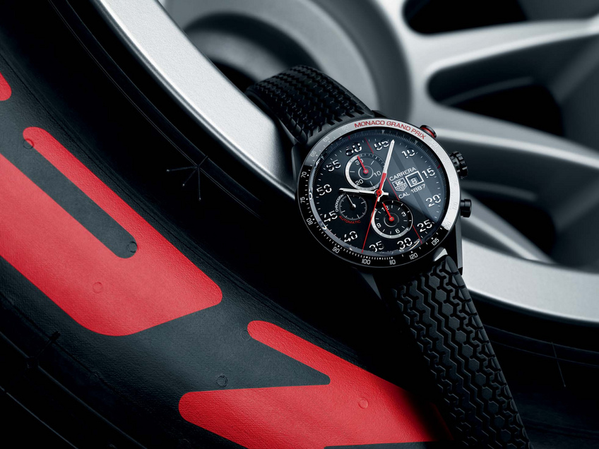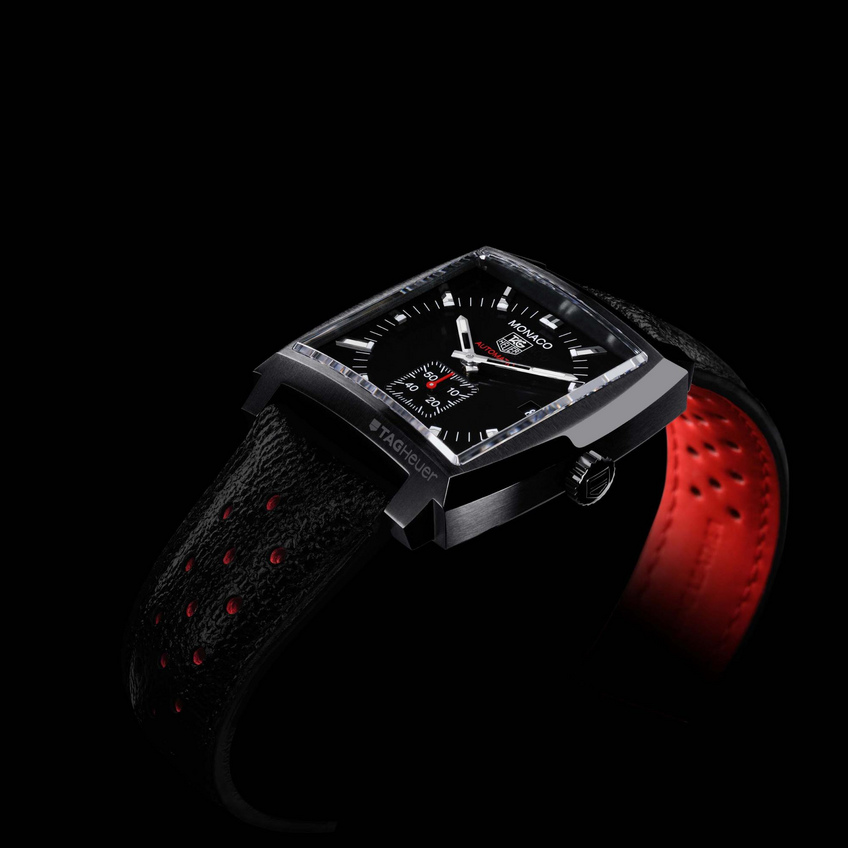 Nouveau venu dans la collection Carrera, ce chronographe qui fait désormais partie de l’équipement des pilotes McLaren rend hommage au Grand Prix de Monaco dont le nom apparaît en rouge sur la lunette en céramique ainsi que sur l’échelle tachymétrique. Le logo de la course est gravé sur le fond saphir, accompagné du numéro de série (0001/2'500). Sous son capot bat un calibre entièrement produit et assemblé en interne par TAG Heuer, le Calibre 1887. Le large cadran noir arbore deux rayures grises et une bande rouge. Ses aiguilles ainsi que les chiffres arabes appliqués à la main sont revêtus de « black gold ». Le boîtier en titane Grade 2 d’un diamètre de 43mm est quant à lui revêtu de carbure de titane. Le bracelet en caoutchouc noir doté d’un motif en relief inspiré des pneus des voitures de Formule 1 de 1963, l’année de naissance de la Carrera. Autant de détails qui lui confèrent un look caractéristique de l’univers de la course automobile, en hommage au patrimoine unique de TAG Heuer.