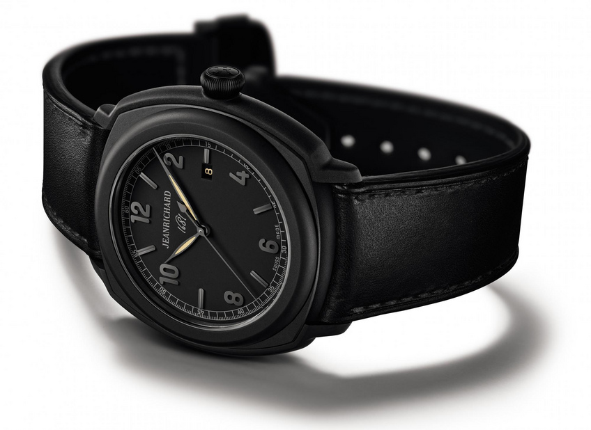 A homage to the very first watch created by Daniel Jeanrichard at the end of the 17th century, the 1681 reinvents tradition in a new, highly original colour of the night. A dynamic, refined and urban look for nighttime walks in well-lit streets or for discovering the more secret corners of a city after-hours, it is the perfect companion to those urban characters fuelled by the electric energy of cities and their alluring facets.The steel cushion case is decorated with a black DLC coating with a matt, powder-coat surface. Its entirely micro beaded finish adds strength to the modern but discreet style. Only essential references, the leaf-shaped hour and minute hands and the date, stand out against the black dial, thanks to a luminescent beige coating. Within this case of hitherto unseen elegance beats a JR1000, automatic winding movement, made in-house, with a black rotor which has an exclusive décor visible through the transparent case-back.