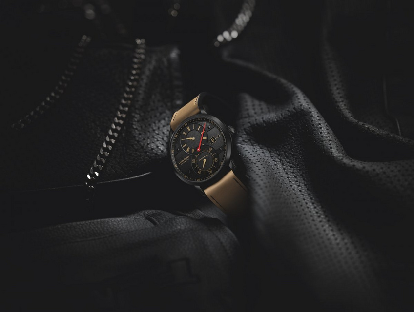 The very latest addition is still 100% in line with the Erard philosophy: the Automatic Regulator. With nerves of steel, a muscular design and a monochrome look from head to toe, it easily assumes the role of bad boy in the collection. Behind its 42-mm middle case beats an automatic heart, shielded by a Dubois Dépraz regulator complication. The watchmaker has decided to beef up this revisited version with a racy, powerful look and a customised design with off-set hours and seconds for nonconformist timekeeping. The understated all-black case with its robust attitude, set against the dynamic beige nubuck leather strap, is a deliberately contrasting colour scheme.