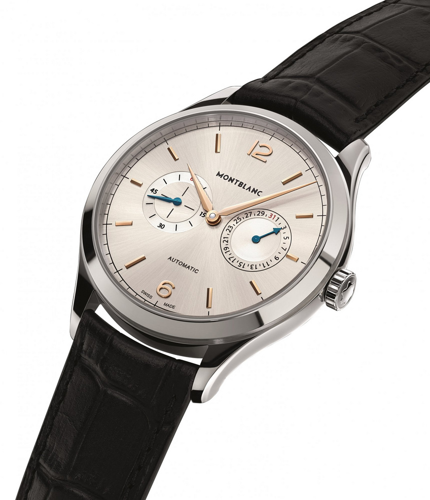 The date counter is balanced by a small second subdial at 9 o’clock, with a blued-steel hand and a red ‘60’ numeral, creating perfect colour harmony across the dial. The inclusion of a second function further reinforces Montblanc’s respect for precision and its passion for elegant design that is at the heart of this collection.