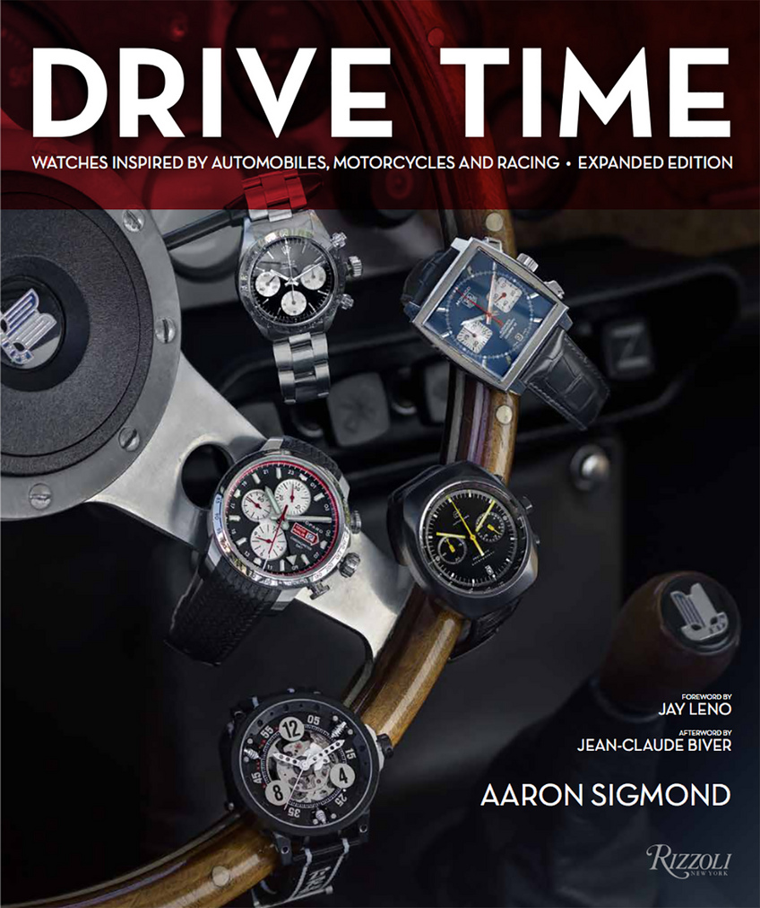 DRIVE TIME: Watches Inspired by Automobiles, Motorcycles, and Racing EXPANDED EDITION is the updated version of the much lauded (Esquire (UK) “Book of the Week”; New York Times, Robb Report, CNN Style and AUTOWEEK featured), stunningly curated volume of now more than 100 watches inspired by motorcars, motorcycles, motorsports and racers, as well as related essays and photo essays. Written by luxury author AARON SIGMOND, with a foreword by noted car-and-watch collector JAY LENO and afterword by JEAN-CLAUDE BIVER, President of the LVMH Watch Division.