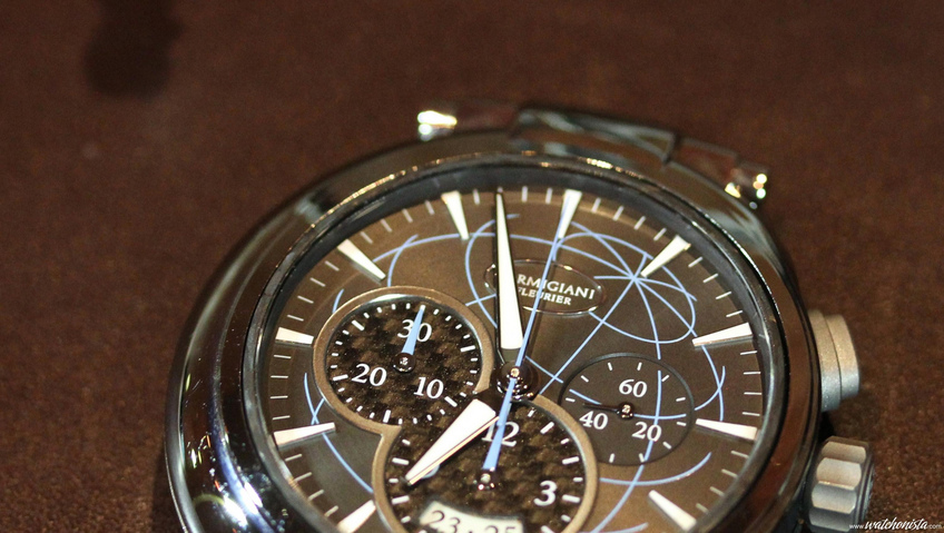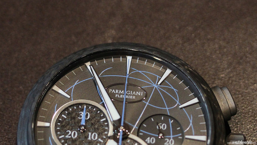 Yes: the internal case. Because the watch is "convertible", it can be fitted in the titanium wrist frame as well as in a steel pocket watch case. The chronograph's secondary dials are also made of carbon fiber while the main dial is made of graphite, to stay within the realm of carbon. The light effects are magnificent and highlight the stylized map of the globe. While you got the explanation for "Transforma", you are still missing the one for "Rivage": it is a limited edition watch (100 copies), an homage to the Swiss sailor Bernard Stamm, whose new boat is made of carbon fiber.