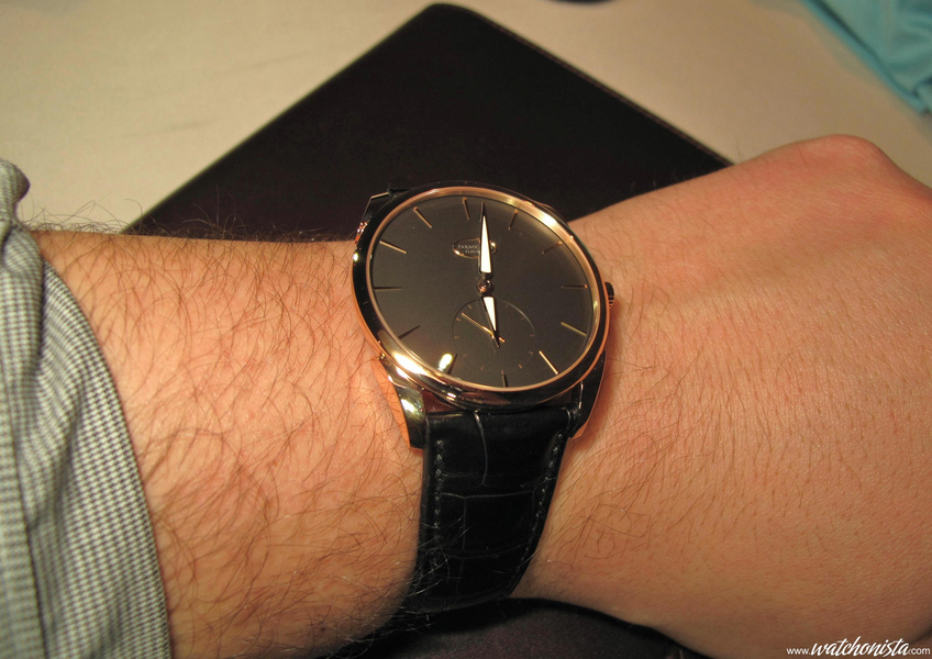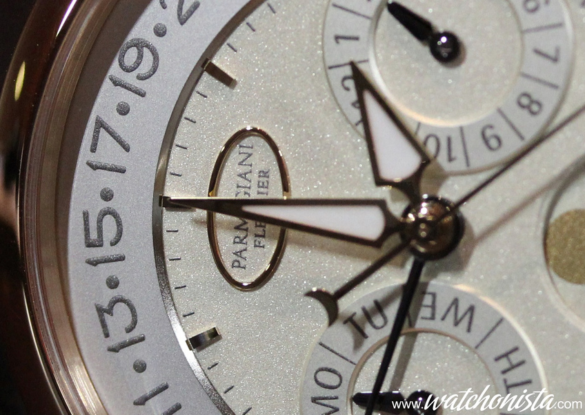 But the centerpiece is of course the Grande date, indicated by a retrograde hand instead of an aperture.