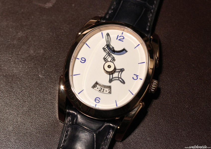 It is also one of the most thoroughly shaped watches, as it features an oval shape down to the tip of its hands.