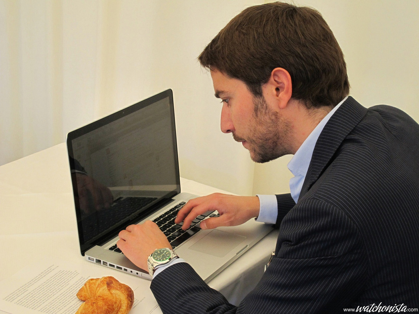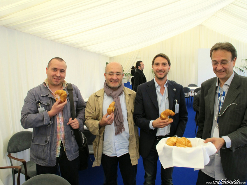 The cream (cofee + croissants) of the watch journalists, from lest to right: Malik Bahri, Gregory Pons, Marco Gabella, Joel Grandjean.