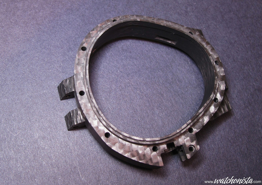 Once the carbon dyes are ready, they are cut up in squares, which are then CNC milled into their final shape: case/case back/dial (mainly)