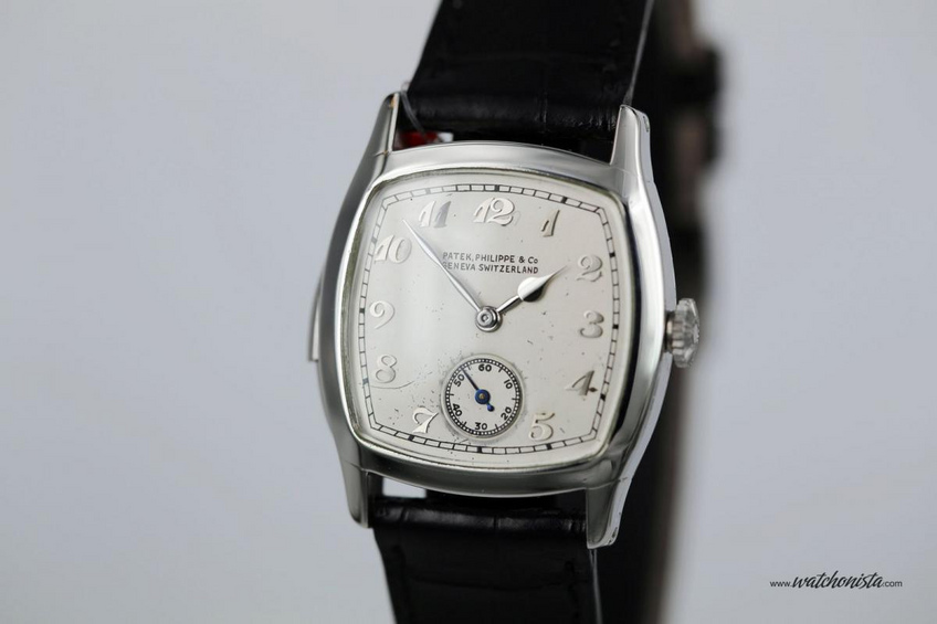 Henry Graves Jr. owned 38 Patek Philippe timepieces, 4 of which were minute repeating wristwatches, 3 made in platinum and one in yellow gold. This example has the movement caliber 11 20/12'' (Ebauche by Victorin Piguet) made in 1927, the platinum cushion-tortue case manufactured in 1928 by A. Wenger and the dial made in 1928 by Stern Frères with silvered finishing, white gold applied Breguet numerals and white gold spade hands.