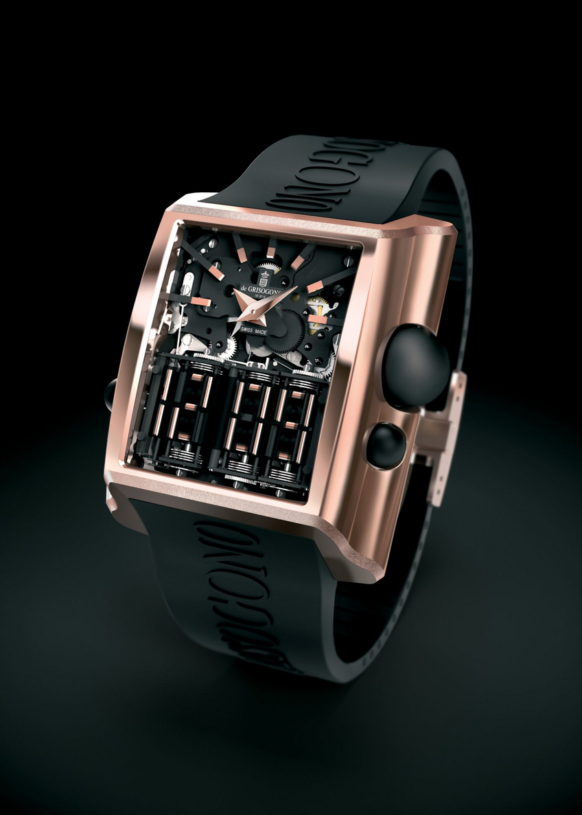 In 2008, one of the experiments was taken further and resulted in the Meccanico dG by De Grisogono. Of rare mechanical complexity, the watch had an original digital display. That year, the watch helped to raise awareness of the work that independent watchmakers such as Denis Giguet, who designed the Sequential One at MCT, carried out on the rotating basis of components to display time differently.