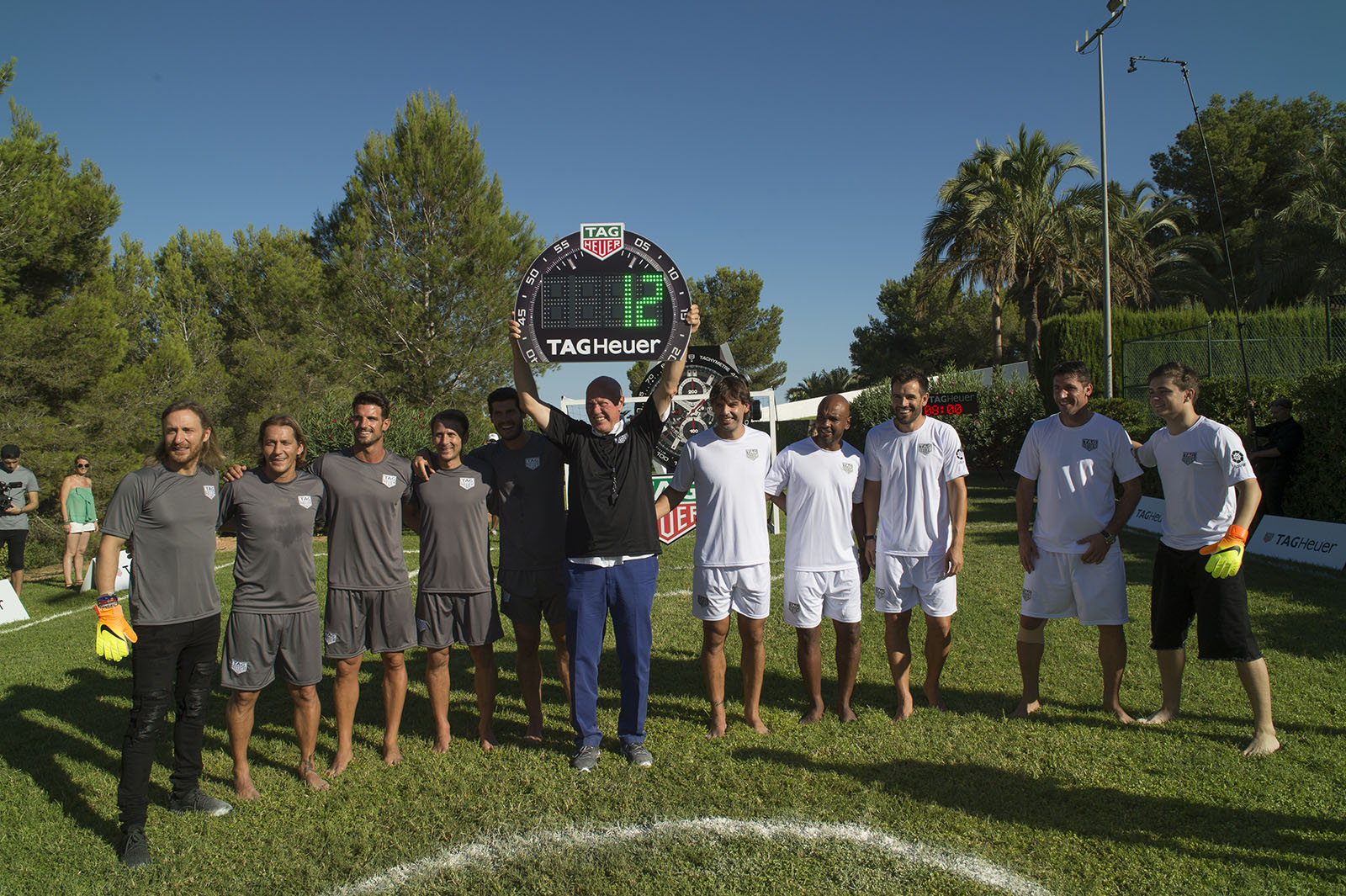 The press conference was followed by a fantastic surprise! 8 top footballers, living legends of La Liga, were waiting, jerseys in hand, for Jean-Claude Biver, David Guetta and Martin Garrix to take on a TAG Heuer Football Challenge against a giant target in the shape of the Carrera Heuer 01 chronograph, as a way of kicking off the forthcoming season.